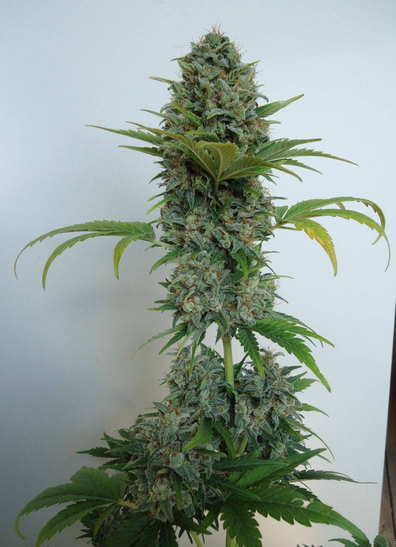 Этот мощный сорт развивается как типичная индика с гигантской главной колой и множеством сильных боковых ветвей, нагруженных плотными и компактными коническими соцветиями.