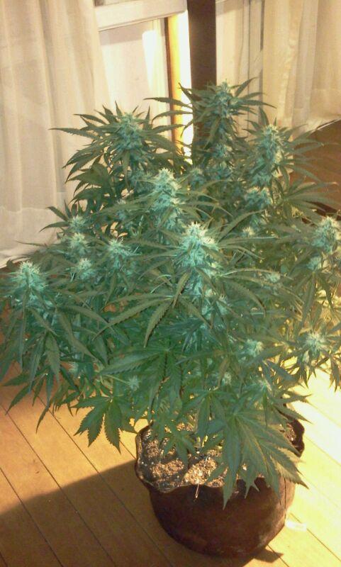 Доехал до растения, опять не срезал, оно отращивает новые шишки. Может на следующей неделе. Жаль нет возможности на трихомы посмотреть под увеличением.