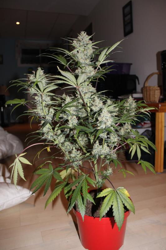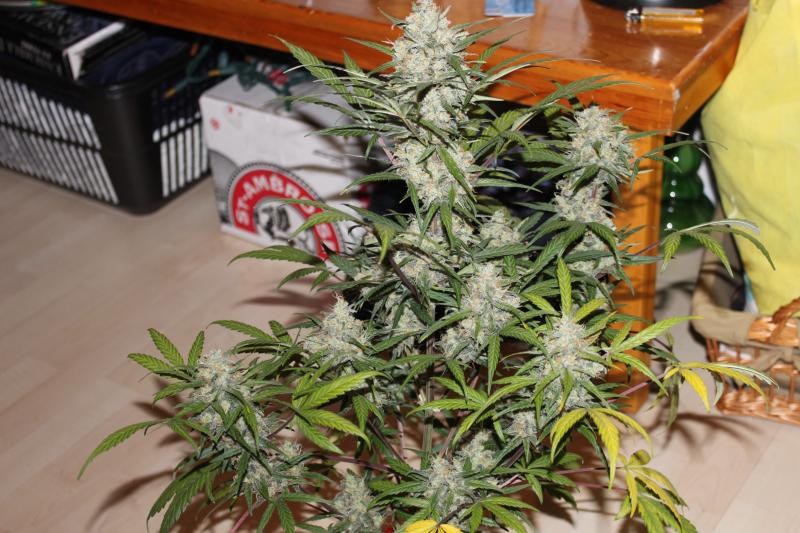 У Auto Super Skunk созрела одна небольшая шишка, это удивило, так как в магазине указанные сроки цветения были 60-65 дней. Поискал информацию в других магазинах, там указаны сроки цветения в 50-55 дней. В общем шишка была срезана, опавшие листья собраны, всё это будет засушено и опробовано в начале следующей недели.