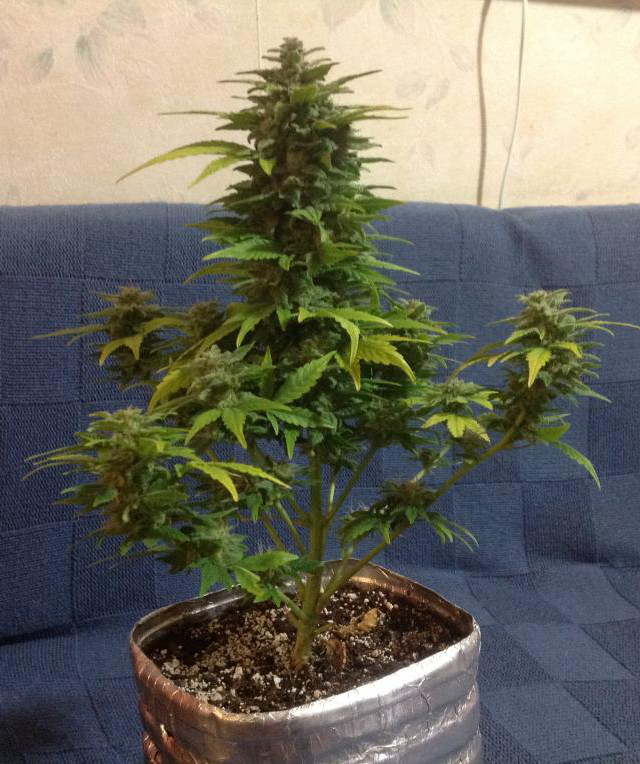Растишка-бонсай (20-30см в высоту) с массой веток и липких шишек, созревающих через 9-10 недель от всходов. Нетерпеливые могут срезать и раньше. Очень слабо пахнет. При выращивании из регулярных семян бывает довольно много мужиков. Нижняя листва под конец желтеет, но это нормально.