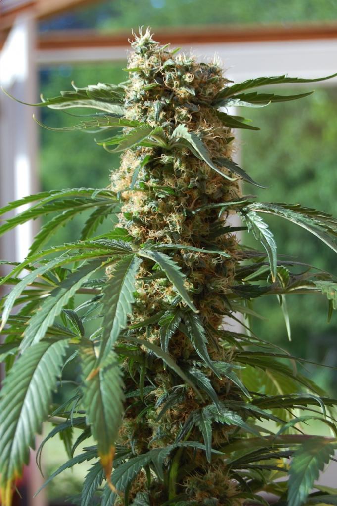 У этой - более плотные шишки, но высота и размер листьев те же самые. Большие, толстые веерные листья и очень сильный рост в первые 4 недели цветения - 5-7 сантиметров в день. В мой первый гровинг она один раз прибавила и 10см за день и обожгла кончики листьев. Я бы посоветовал держать ее на веге как можно дольше, но подрезать, чтобы держать высоту под контролем. Не давайте слишком много удобры и держите на цвете 70 дней.
