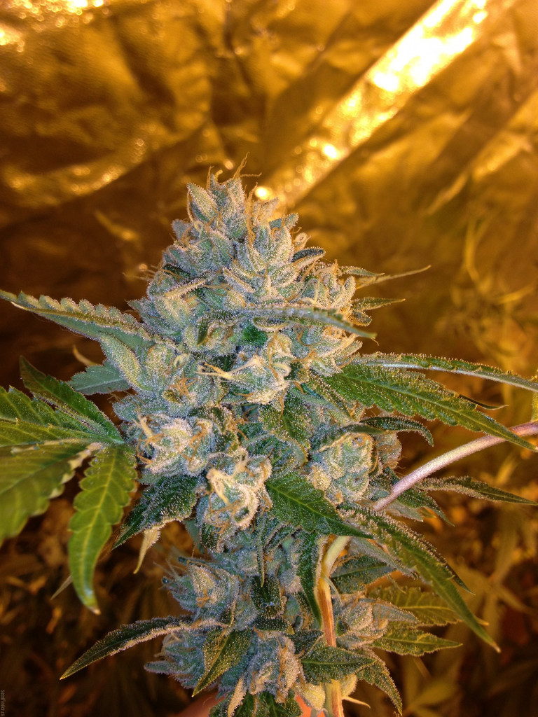 Неприхотливая, подходящая для новичков индика, НО с двумя оговорками: 1) не ждите больших урожаев, 2) будьте готовы к зверскому вытягиванию на цвете - до 3 раз. Последнюю проблему решит обрезка/прищипывание главного стебля. Цветет довольно долго для индийского сорта, но шишки получаются белыми от "снега" и липкими. До самого конца проверяйте цветы на предмет мужских бананов. Сильно воняет. Не боится средних и высоких доз удобрений. Все елки получаются один в один.