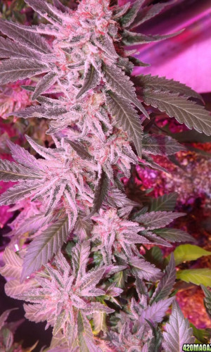 Исключительно быстрый, но при этом не карликовый автоцвет. Растет в любых условиях, идеален для новичков. Дает сильный хай в голове и теле. 15-18% ТГК.