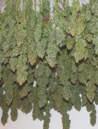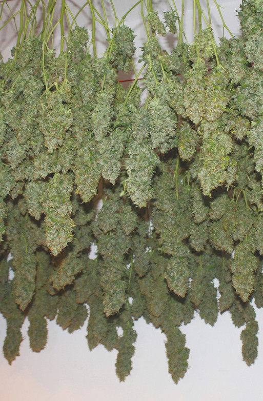 Сушил 8 дней на сетке, потом отправил в стеклянные банки. Выхлоп был чуть больше 90г. Шишки вовсе не плотные, что, как я читал, часто бывает с эти сортом.