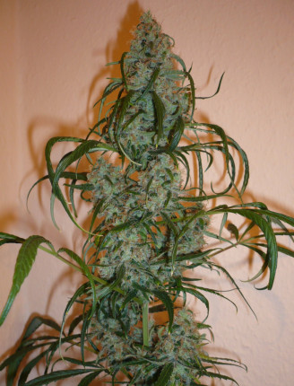 Сорт очень порадовал :) Все семки взошли. Растения показали 2 фенотипа. 1й созрел раньше, за 8 недель и был весь усыпан трихомами, аромат сладкий, сливочный, очень вкусный! Эффект тоже порадовал, сильный, позитивный, сатива/индика. 2й еще цветет, уже 12 неделю :( Аромат лимонный, сосновый. На вид более сативный, и шишки более рыхлые. Органика biobizz, днат 400w. Первый фено дал 65гр шиш с 3х недельной вегой. Но можно поднять больше если использовать метод LST или скрог.