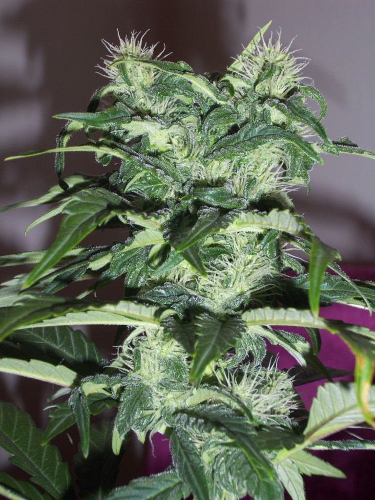Урожайный автоцвет с плотными липкими шишками, невысокий, с большой главной колой и умеренным боковым ветвлением. Подходит как для закрытого грунта (цикл 20/4), так и для открытого.