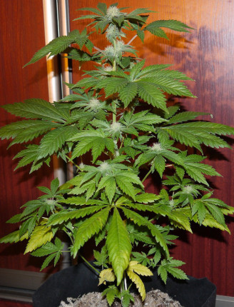 Если задумали вырастить этот сорт, дайте ему побольше места. Очень жадный до света и простора. Растет как какой-нибудь виноград. В конце цветения требует подпорок/подвязки. Ветки не выдерживают веса зрелых шишек. Чрезвычайно много кристаллов. Начиная со второй недели трихомы повсюду. Растиха как бы притормаживает на завершающих стадиях, так что я изменил цикл на 8/16 в последнюю неделю. 65-70 дней на цвете - это нормально.
